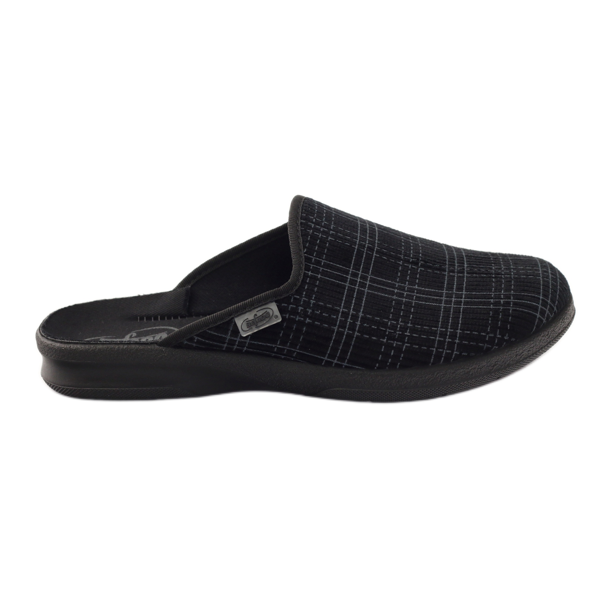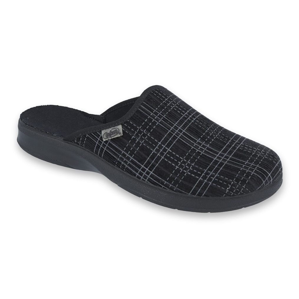 Befado men's shoes pu 548M003 black are the perfect choice for men who value comfort and style in everyday home footwear. These elegant slippers in black, decorated with a subtle checkered pattern, are a perfect combination of modern design and practicality.