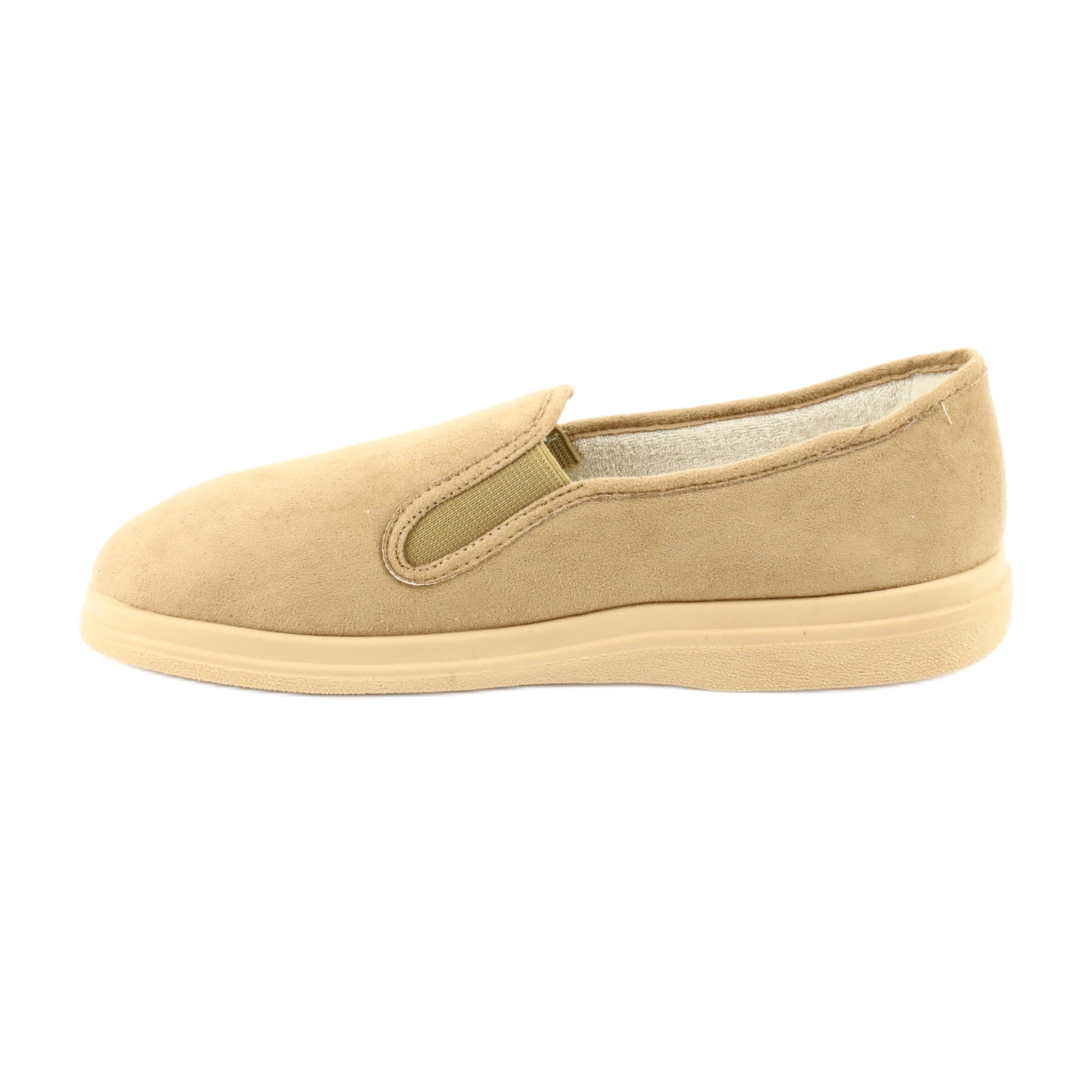 Befado 991M001 is also a breathable footwear, which ensures pleasant conditions for the feet all day long. Thanks to the unique properties of the materials used in production - the outer fabric and the insole fabric - your feet will feel fresh and comfortable. The beige color and simple design make these slippers fit perfectly into various styles, while providing an interesting complement to everyday outfits.