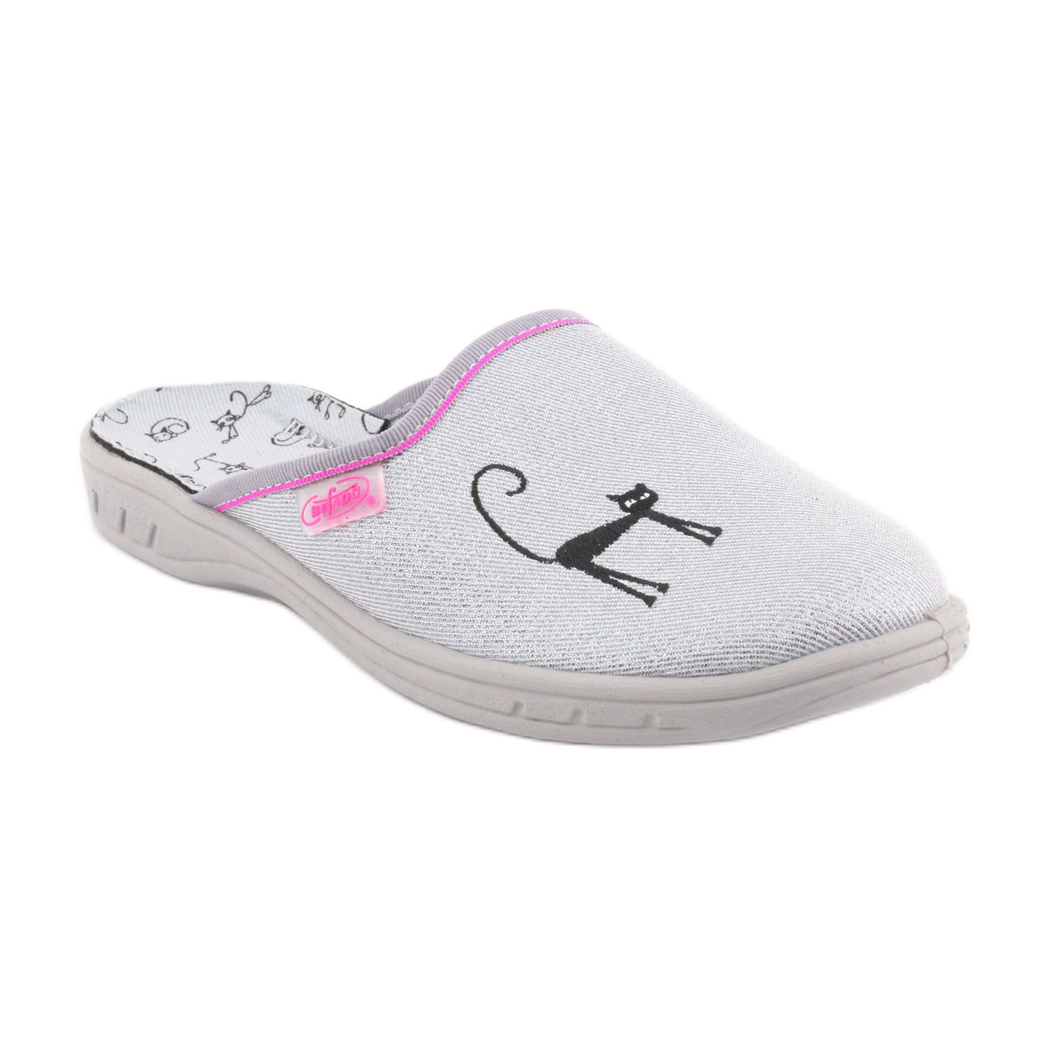 We present the beautiful Befado 707Y398 flip-flops in a tasteful gray color that will delight every little girl! These unique slippers, decorated with cute applications with a black cat, are a great choice for kindergarten, school and everyday at home.