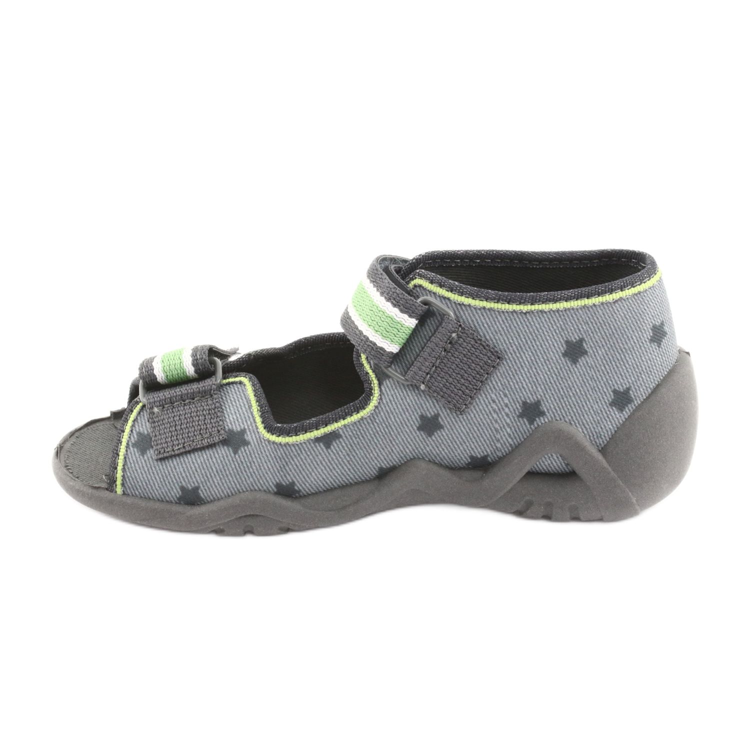 Befado yellow children's shoes 250P086 in gray and green colors are the perfect choice for warmer days for little feet. These comfortable sandals provide not only freedom, but also comfort of wearing, thanks to the uppers made of breathable cotton fabrics. This material guarantees proper hygiene and comfort, which is extremely important for growing children.