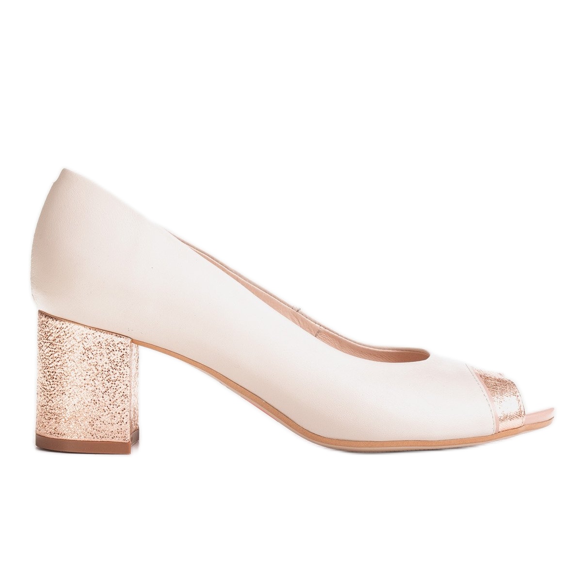 Details: Marco Shoes Beige 1093P pumps with a decorative heel