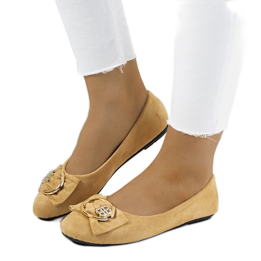 Classic Ribero ballerinas in a shade of beige-khaki combine an elegant look with the highest comfort. Suede ecological leather looks subtle and stylish, and the shiny gold buckle blown up with zircons with a bow accent adds a feminine style. The soft fabric insert adapts to the foot, ensuring comfortable wearing all day. Perfect for summer stylizations - from casual to more elegant.