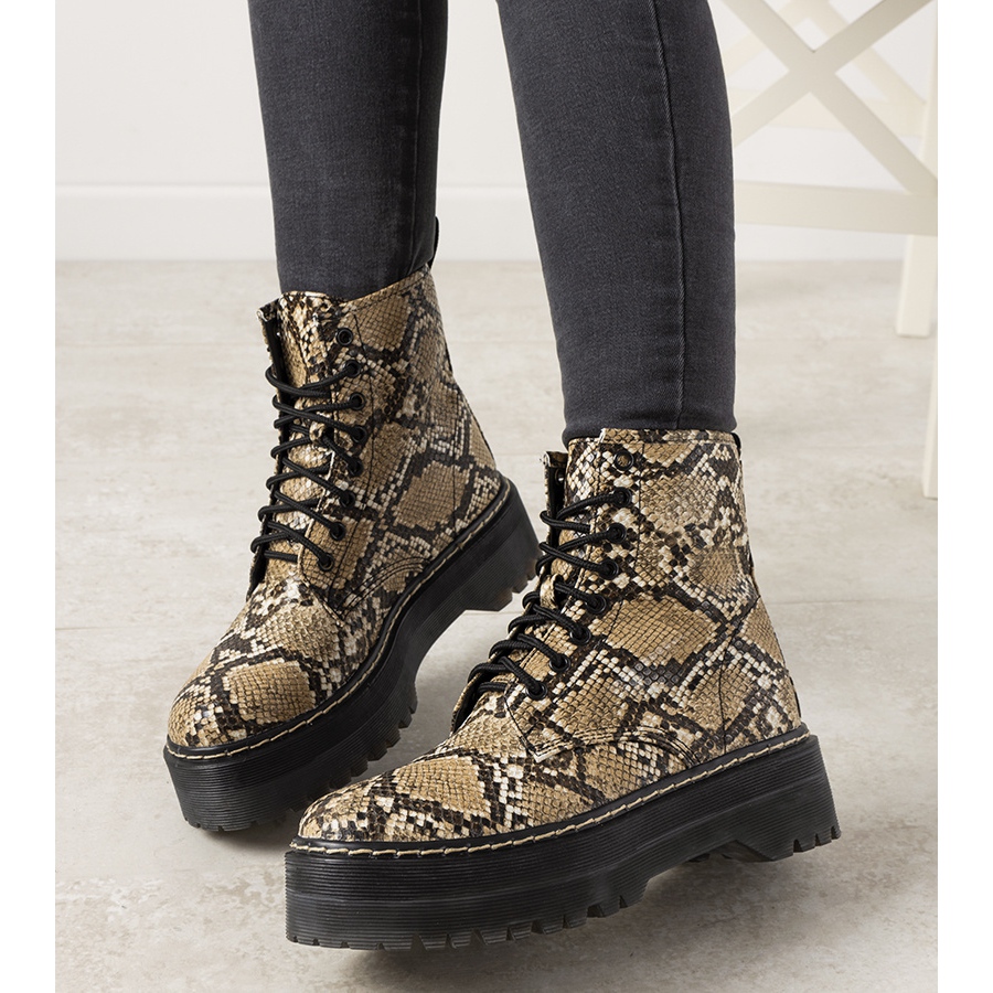 **Beige Derossa Combat Boots in Snake Skin Pattern - Perfect Choice for Fall!**