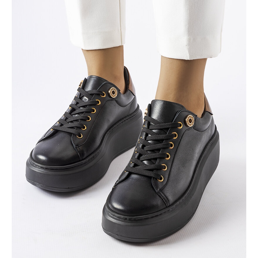 Stylish women's shoes LS5379 Taupe combine a timeless design with convenience of use. Made of natural leather with a subtle, beige -black finish (taupe with black accents), they will work both for casual and more formal stylizations. Low, laced, with a rounded nose - a universal model for the summer season.
