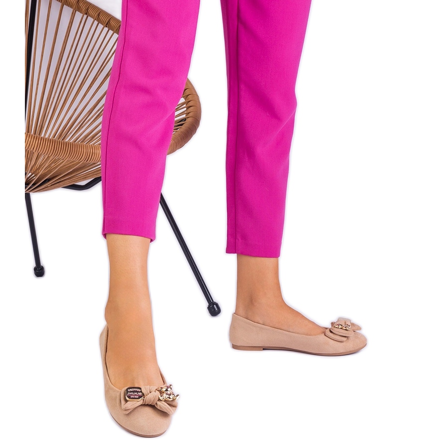 Ballerinas are fastened with a slice, which increases their functionality, and the almond carrier gives them an elegant character. Regardless of the occasion, these beige ballerinas will work perfectly, and their brown sole made of plastic ensures stability and convenience of use.