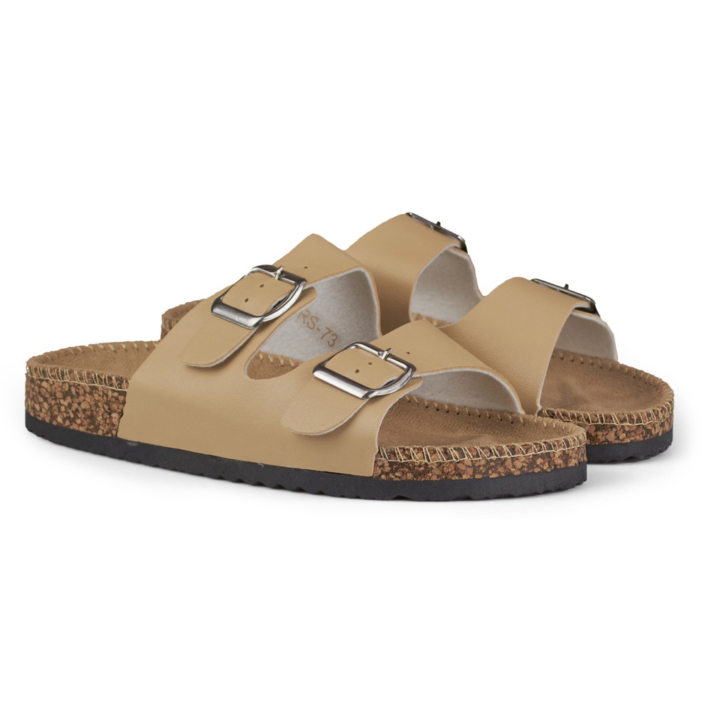Beige comfortable women's slippers - a universal model for spring and summer, combining comfort with an elegant, subdued design. Made of high quality ecological leather, with a soft suede insert, they offer a stable 3 cm platform and comfortable slipping with an adjustable buckle, thanks to which you can match them to any foot.