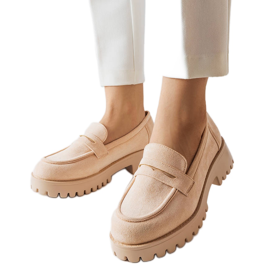 Inna Beige eco-suede shoes Dina beige is an elegant choice for every woman who appreciates the combination of classic aesthetics with an ecological approach. These women's moccasins from the Buty Gemre brand combine timeless design with care for the environment, thanks to the use of high-quality ecological suede leather.