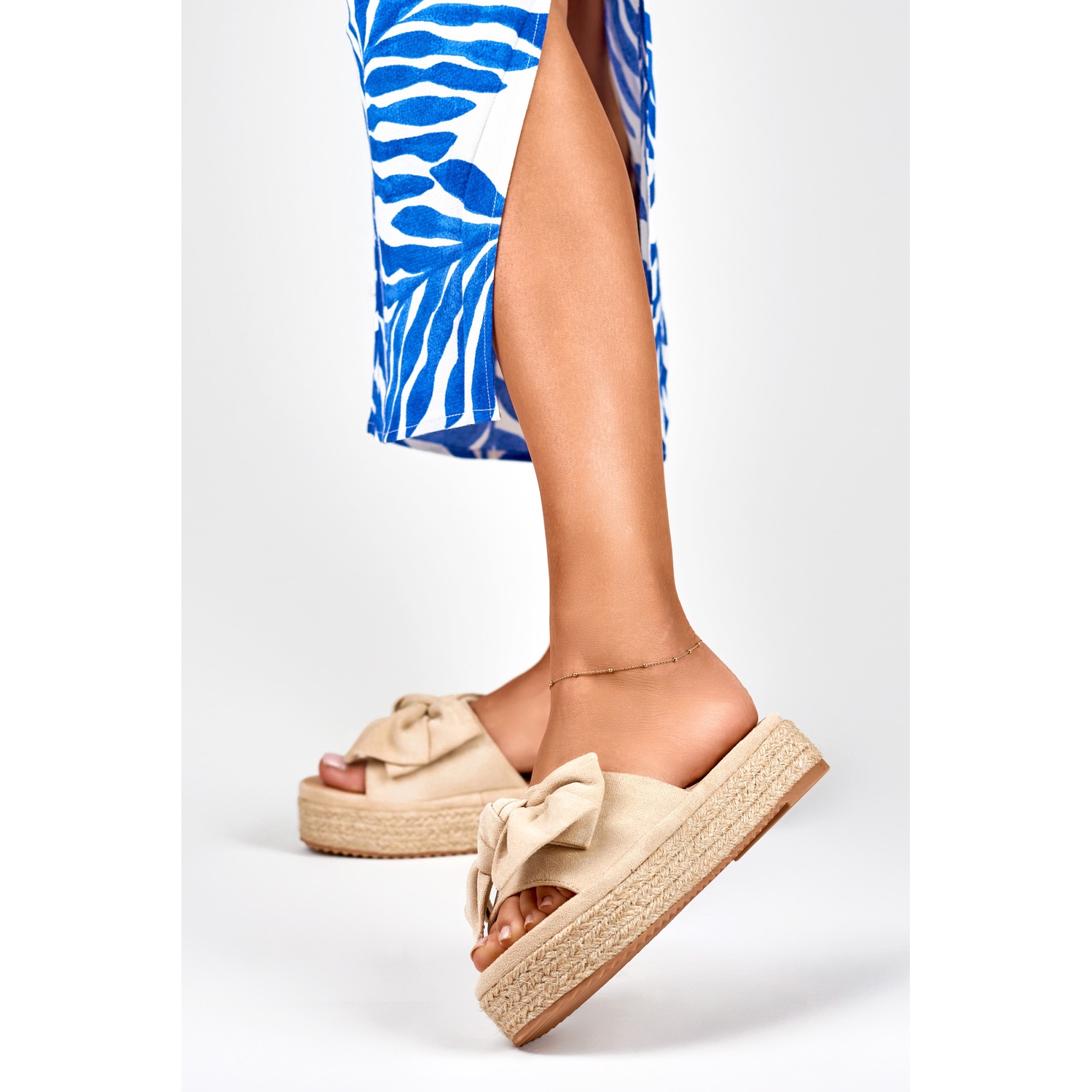 **Beige espadrille slippers with a bow - a perfect choice for spring and summer!**