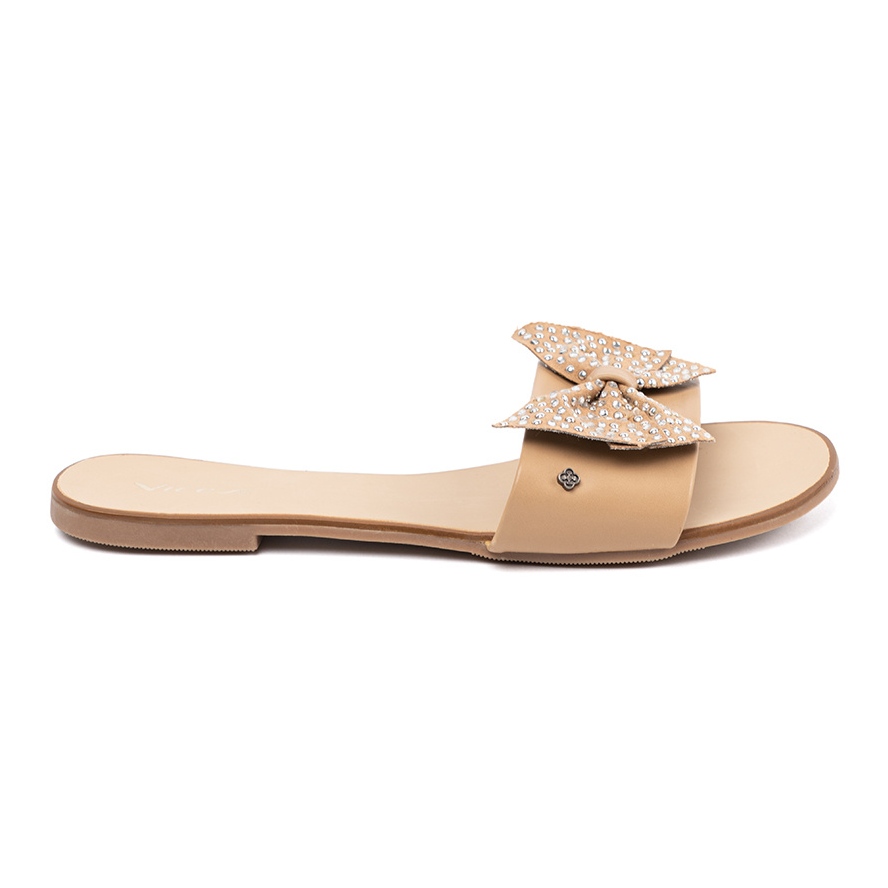 Shelvt Shelvt Beige flip flops with a bow in the rhinestones