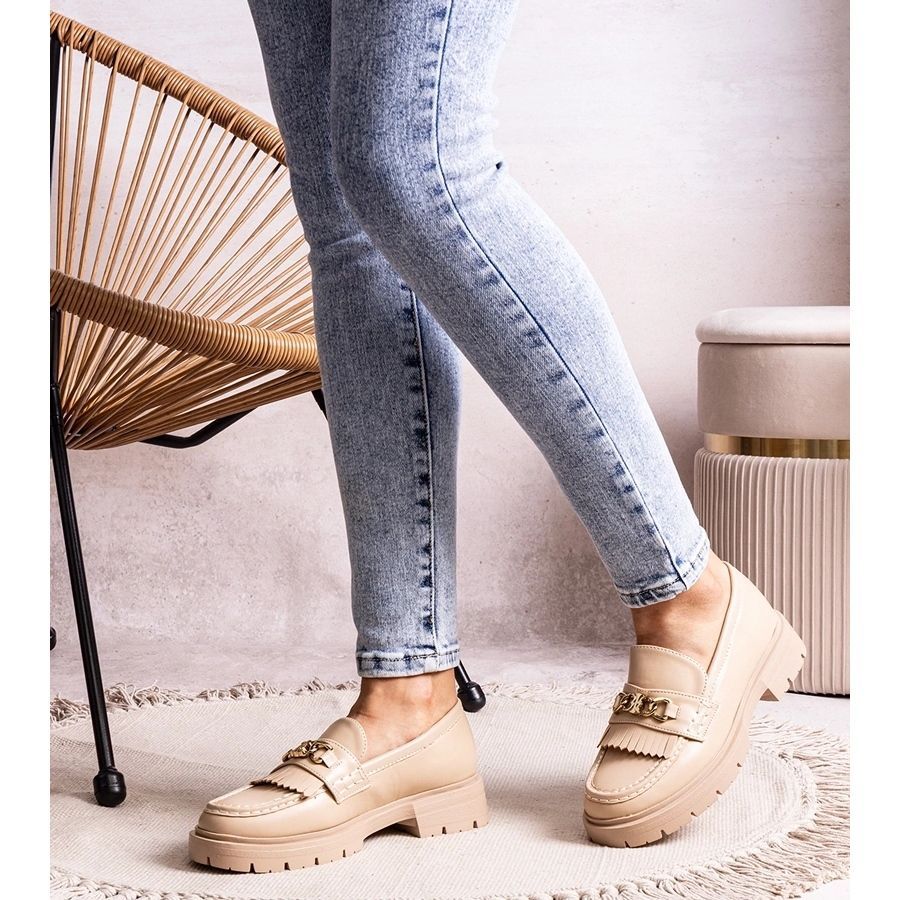Discover elegance and comfort with beige semi -cab with the Golden Angelania buckle. These unique loafers combine fashionable design and practical application, which makes them an ideal choice for every occasion. The golden buckle-Łancuszek is a characteristic accent that distinguishes this model and gives it a special style.