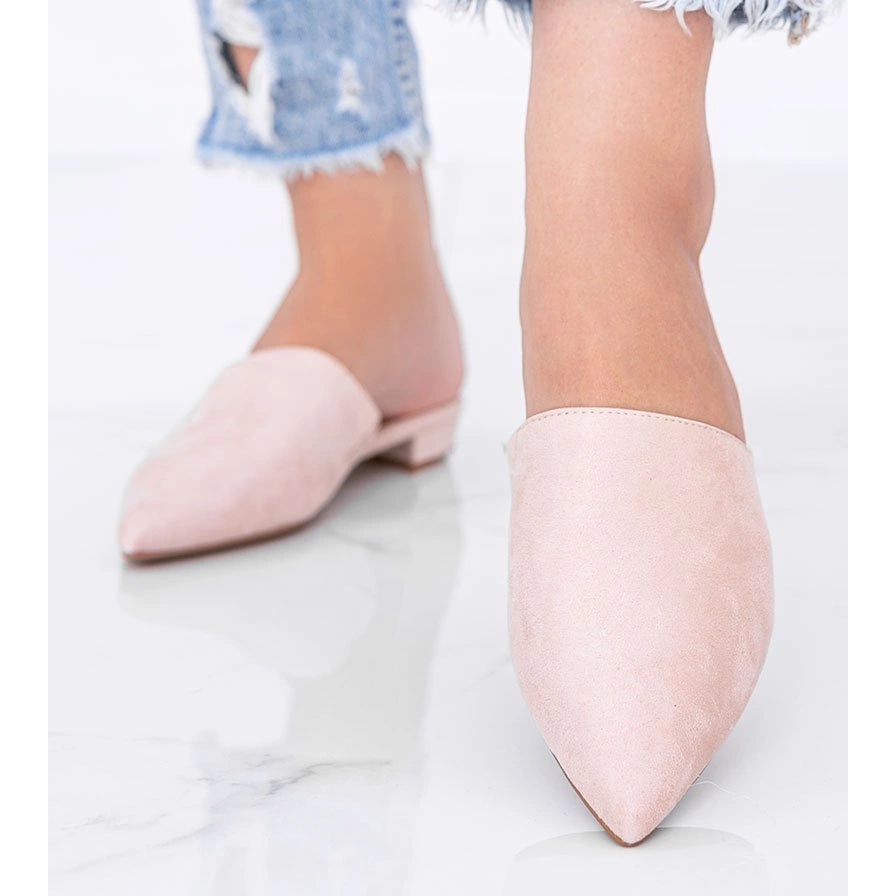 Discover the Santiago model - subtle flip flops made of suede ecological leather in a timeless nude shade. The built -in front with a nose in the spitz optically slim the foot, and the low, 2 cm post adds elegance to the cut, while ensuring the comfort of wearing every day.