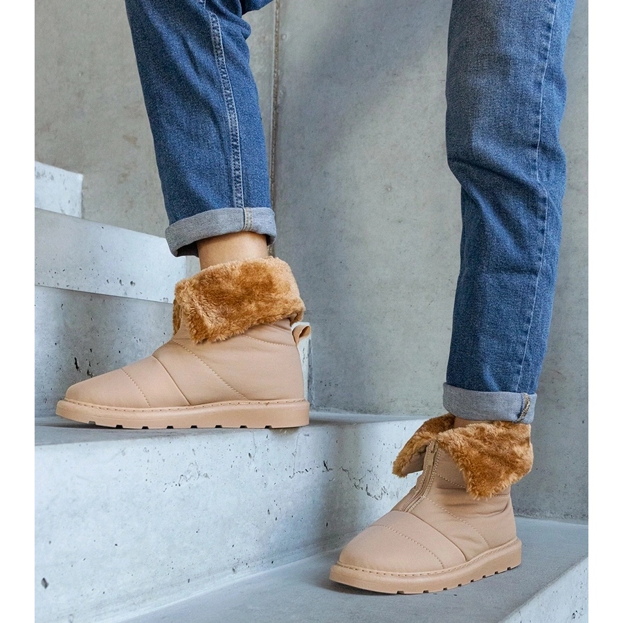Discover the perfect footwear for winter days - beige insulated snow boots with Edidd collar. These stylish snow boots combine fashionable design with practical solutions, guaranteeing comfort and heat even on the most cold days. The high platform with a height of 3.5 cm gives them a modern character, and the round nose adds lightness and class.