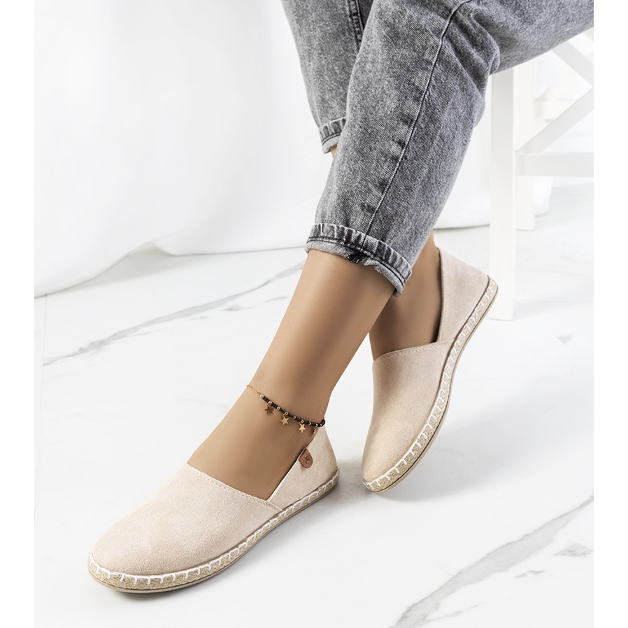 Beige Jacquet women's espadrilles are an ideal choice for summer days, combining elegance with comfort. Made of high-quality suede eco-leather, they offer not only a stylish look, but also comfort. The design inspired by classic moccasins attracts attention with its original cut, which makes espadrilles a perfect complement to both casual and slightly more elegant outfits.
