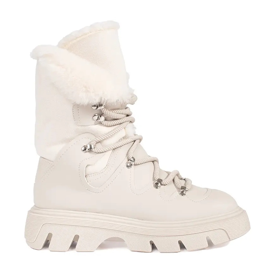 Seastar Seastar Beige lace-up women's snow boots with fur on the platform