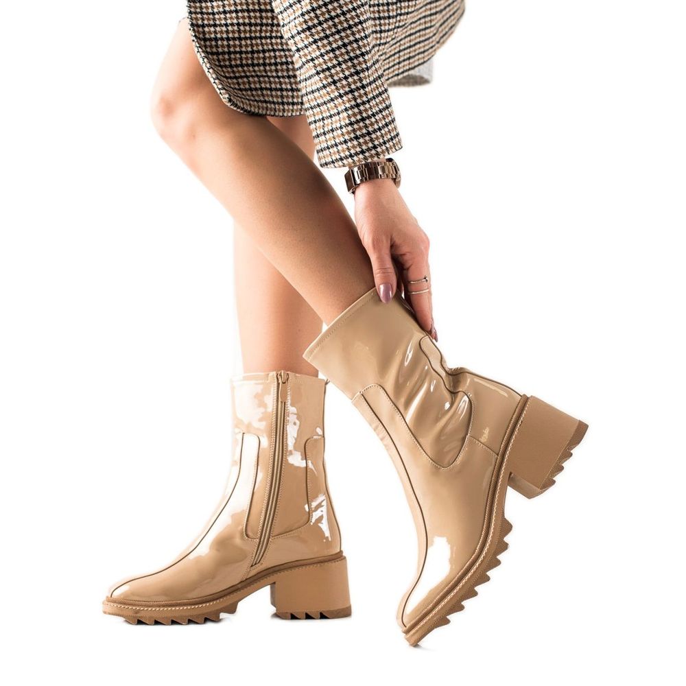 The beige and brown color of the boots makes them extremely versatile and easy to match with different styles - from casual to more elegant. Made of high-quality ecological leather, the boots not only look impressive, but are also environmentally friendly. The varnished surface gives them a unique shine, making them a great choice for evening outings.