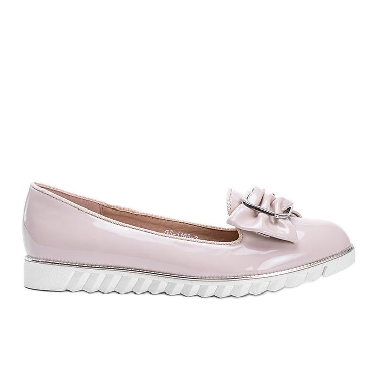 Beige patent leather moccasins with a bow Nemesise are a unique model that impresses with its elegant design. Made of patent eco-leather, these shoes exude a subtle shine that adds to their chic. A delicate bow interlaced with a buckle is a stylish accent that will certainly attract attention.