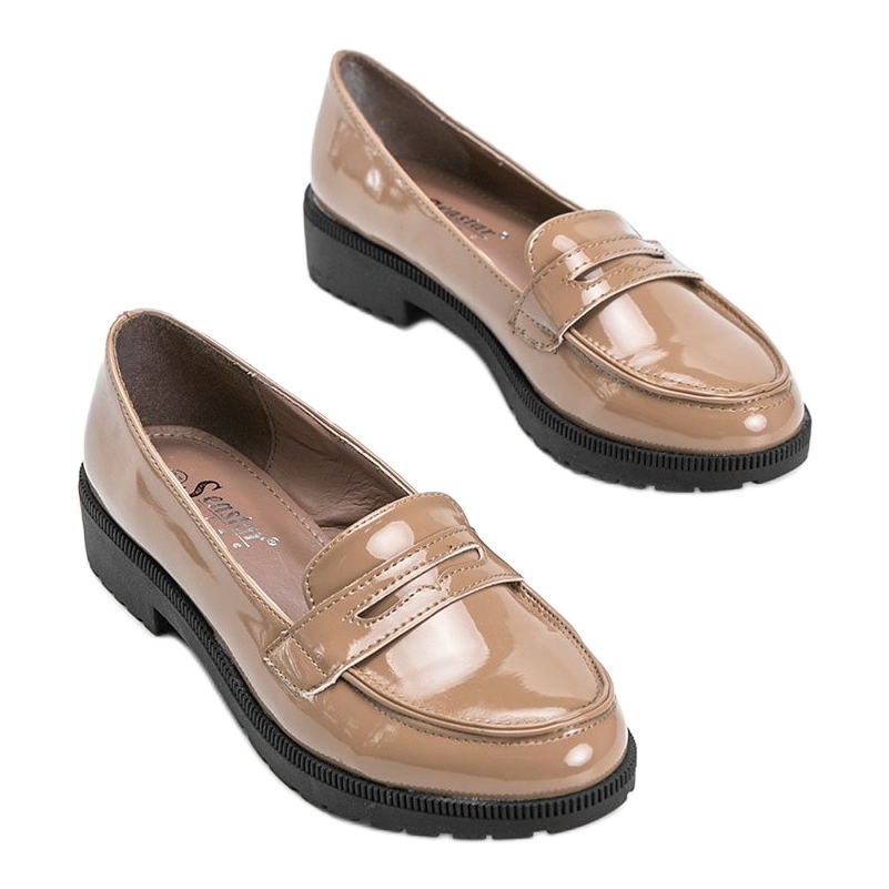 Beige patent leather loafers Sis are the perfect choice for women who want to combine elegance with comfort. These stylish shoes with a thick sole are made of ecological patent leather, which makes them look exceptional. Their classic design has been broken with a modern finish, making them a great choice for everyday wear.