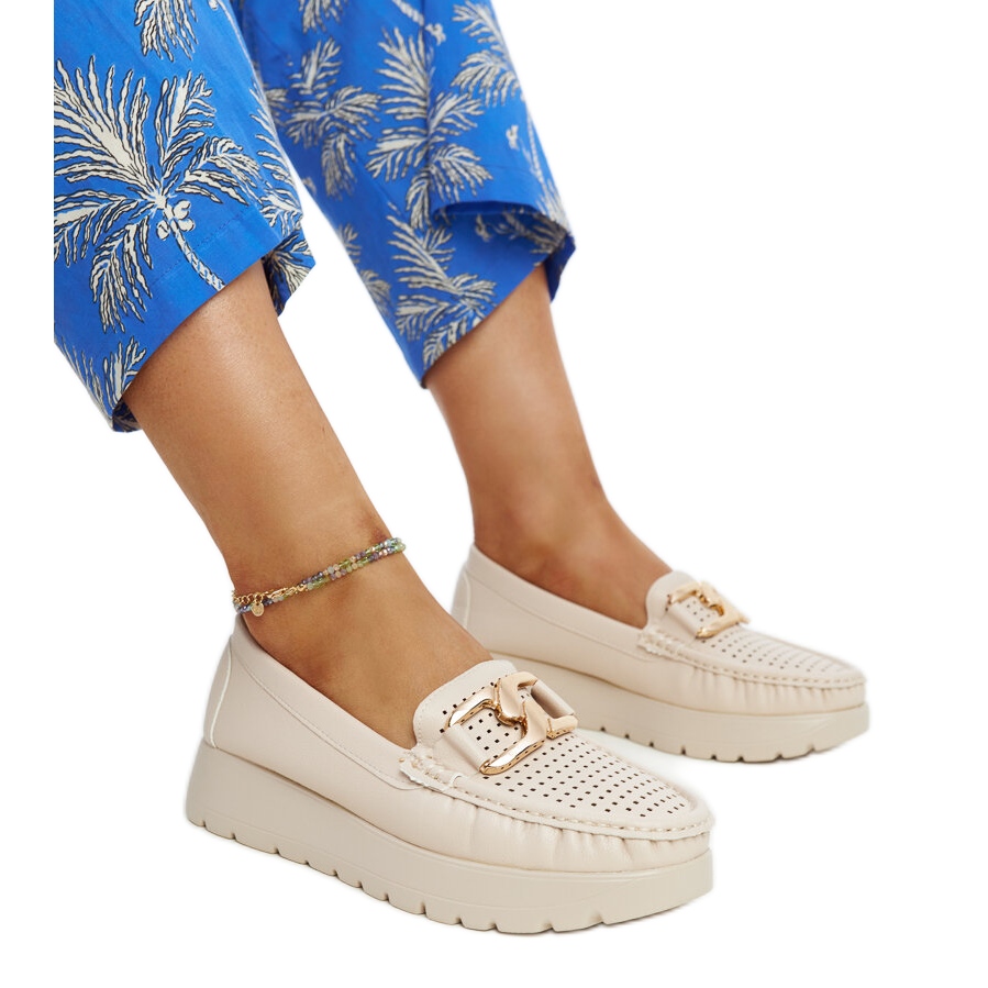 Beige leather shoes with a decorative buckle is a versatile model that you can easily compose with various stylizations - from casual to a bit more elegant. Invest in this fashionable add -on and enjoy the comfort and style every day! In the original box from the manufacturer, these shoes are also a great gift idea.
