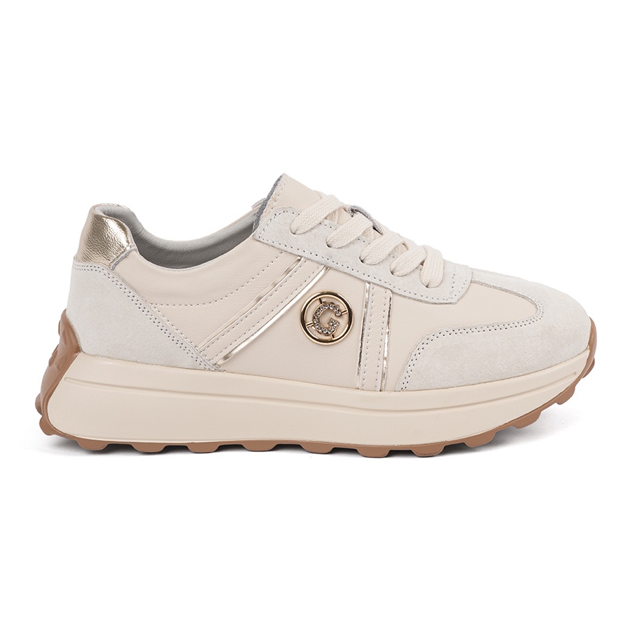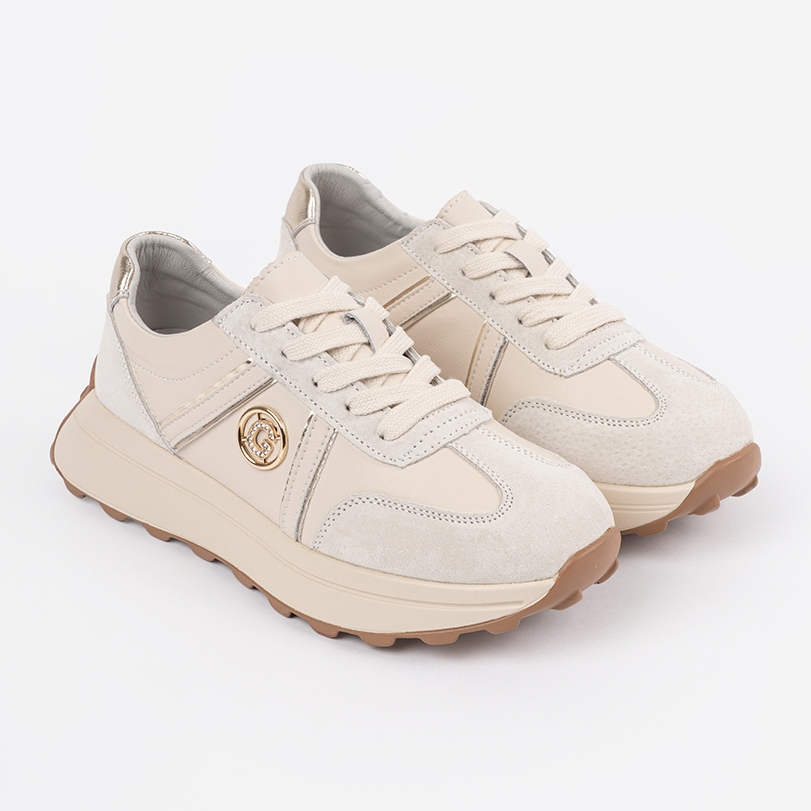 Discover elegance and comfort in beige leather sneakers on a thick sole from the Goodin brand. Created from the highest quality natural leather, these stylish women's footwear combines modern design and functionality, making them the perfect choice for both daily outings and active days full of movement.