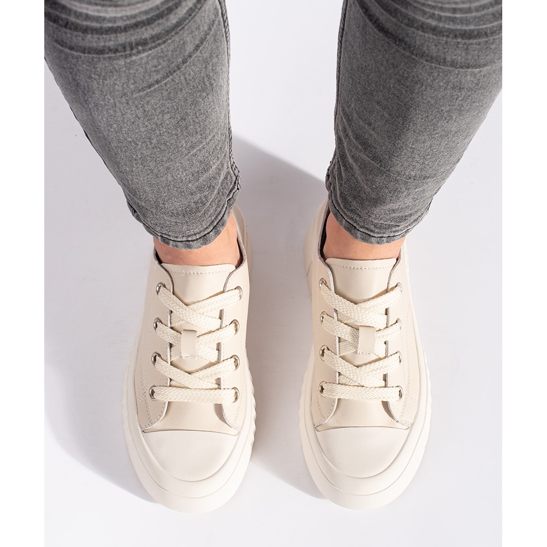Discover a new version of daily elegance with beige leather women's sneakers from another brand. These stylish shoes combine a sporty character with a casual finish, perfectly fitting into the latest trends. Made entirely of natural leather, both inside and outside, they provide not only comfort, but also durability for many years.
