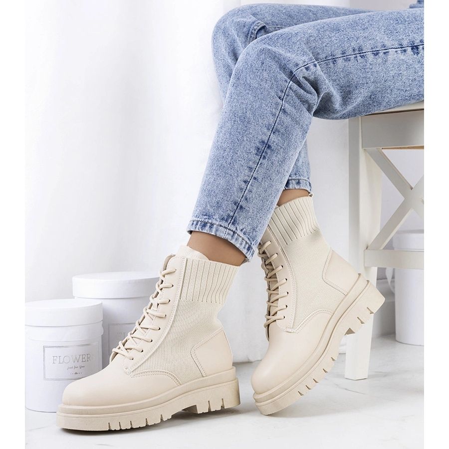 Lennon beige trappers are modern workers that will emphasize the nature of both casual and more subdued stylizations. The ankle upper is made of elastic, striped material adapts nicely to the leg, while the rest of the shoe is made of high quality ecological leather. Model tied at the front for laces in a matching color, embedded on a massive, flat sole with cutouts - perfect every day. Non -insulated model.