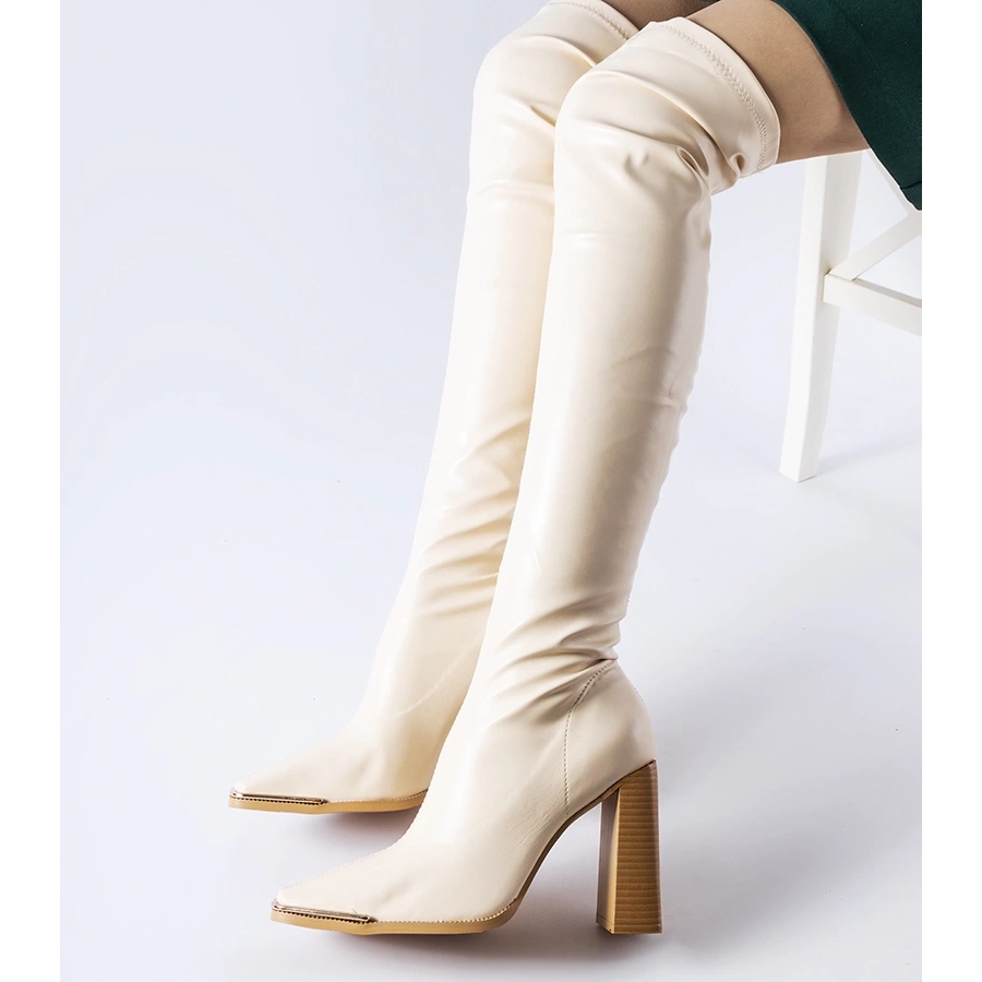 Details: Beige long high-heeled boots from Faubourg
