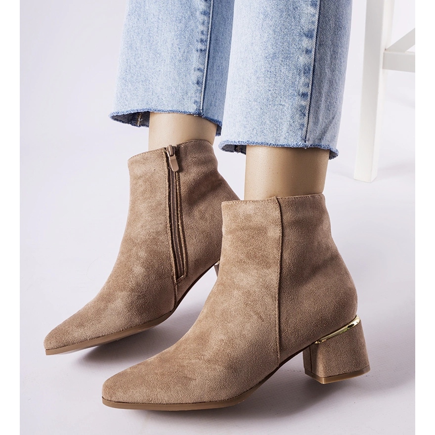 Inna marka Beige low-heeled ankle boots from Tayyib