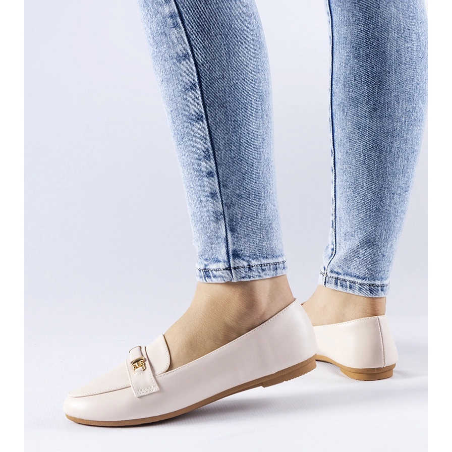 Discover beige loafers with a Velino buckle - perfect shoes for summer days, combining elegance and comfort. Their flat sole with a height of 1 cm ensures stability, and the low, almond nose adds a modern character. The buckle placed on the upper is not only a detail, but also a way to stand out from the crowd.