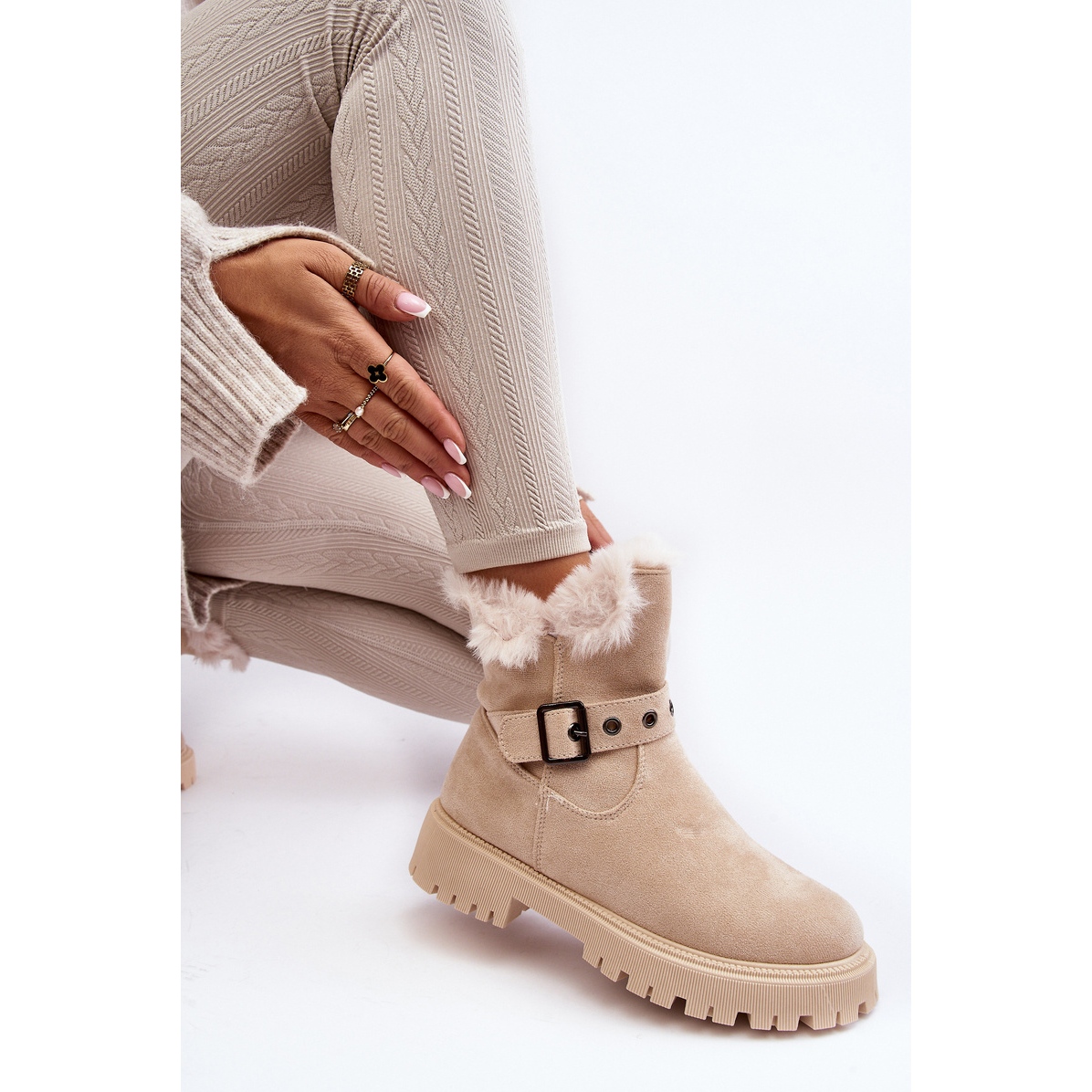 Stylish and practical boots of Vincez Morcos are an ideal proposition for cooler days. The upper finished with soft fur and insulated insert ensure comfort and heat, and the zipper fastening makes it easier to put on. Classic, beige color and suede ecological leather make the model easily adapt to many styles.