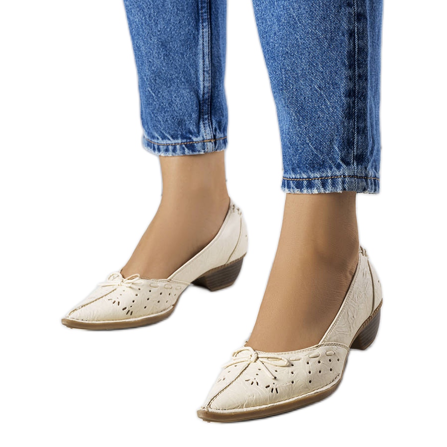 Glazko ballerinas are an exceptional choice for women who want to combine comfort with elegance in summer styling. Made of ecological leather, these beige openwork ballerinas impress with care in every detail. Their low height, with a 3.5 cm heel, gently emphasizes the legs, adding them lightness and feminine charm.