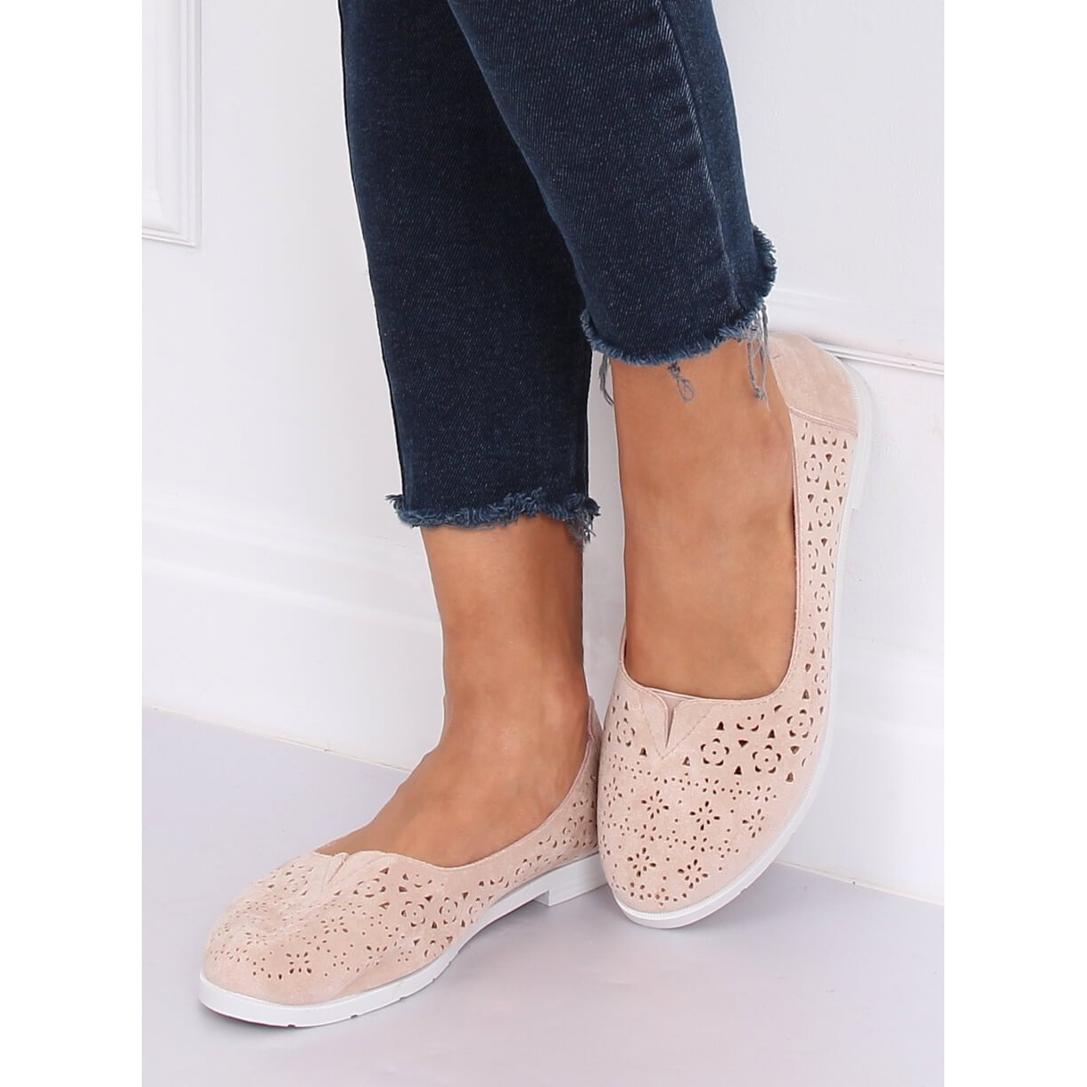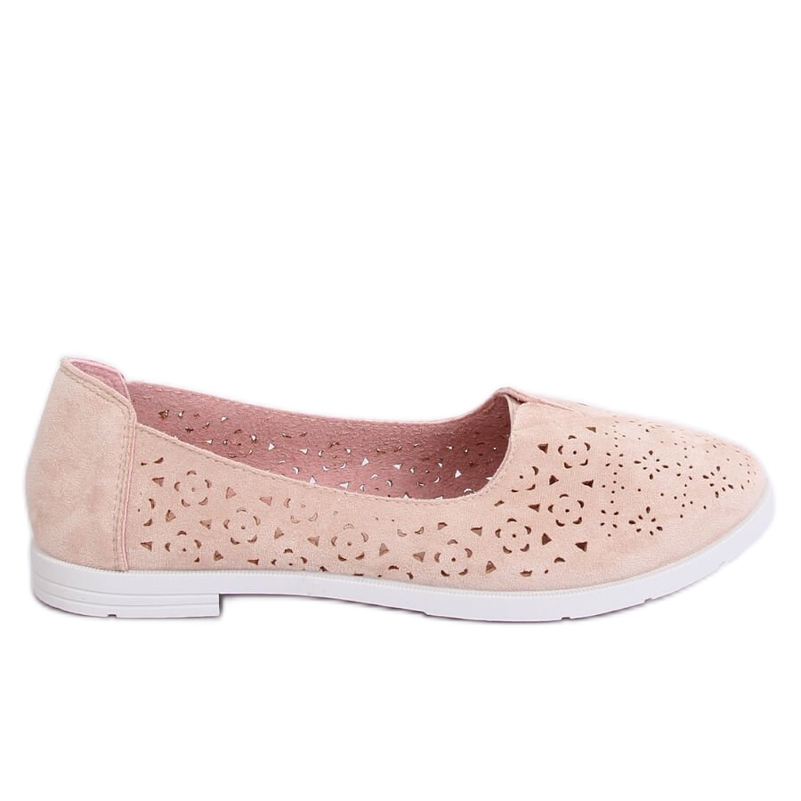 Beige openwork ballerinas ZA02P Beige are the perfect choice for every woman who wants to combine comfort with a fashionable look. These subtle shoes are distinguished by a unique openwork pattern that adds lightness and girlish charm. Made of high-quality ecological suede, they are not only pleasant to the touch, but also environmentally friendly.