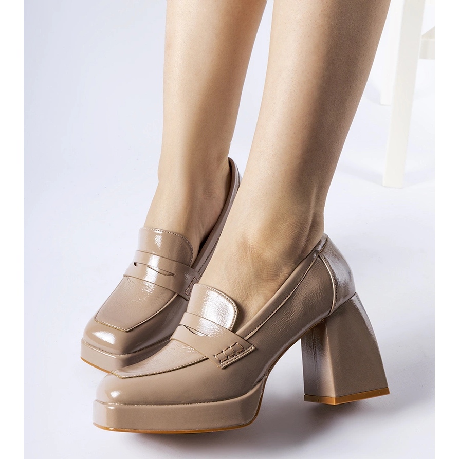 Beige varnished pumps on the West post - elegance and comfort for the summer