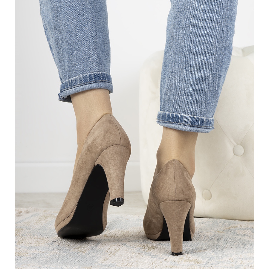 Beige pumps with a block heel made of eco-leather Sara are a great choice for women who value elegance combined with comfort. This classic style finished with suede eco-leather attracts attention and fits perfectly into the latest fashion trends.