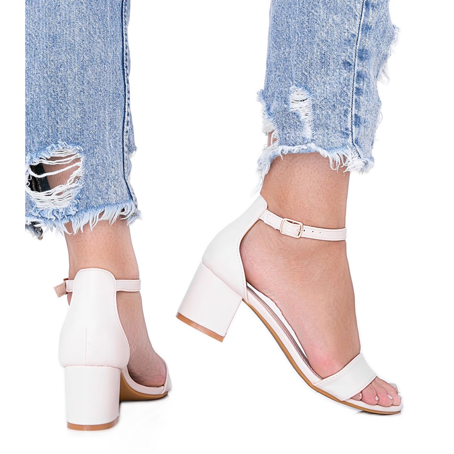 Details: Beige sandals on a low Sever post