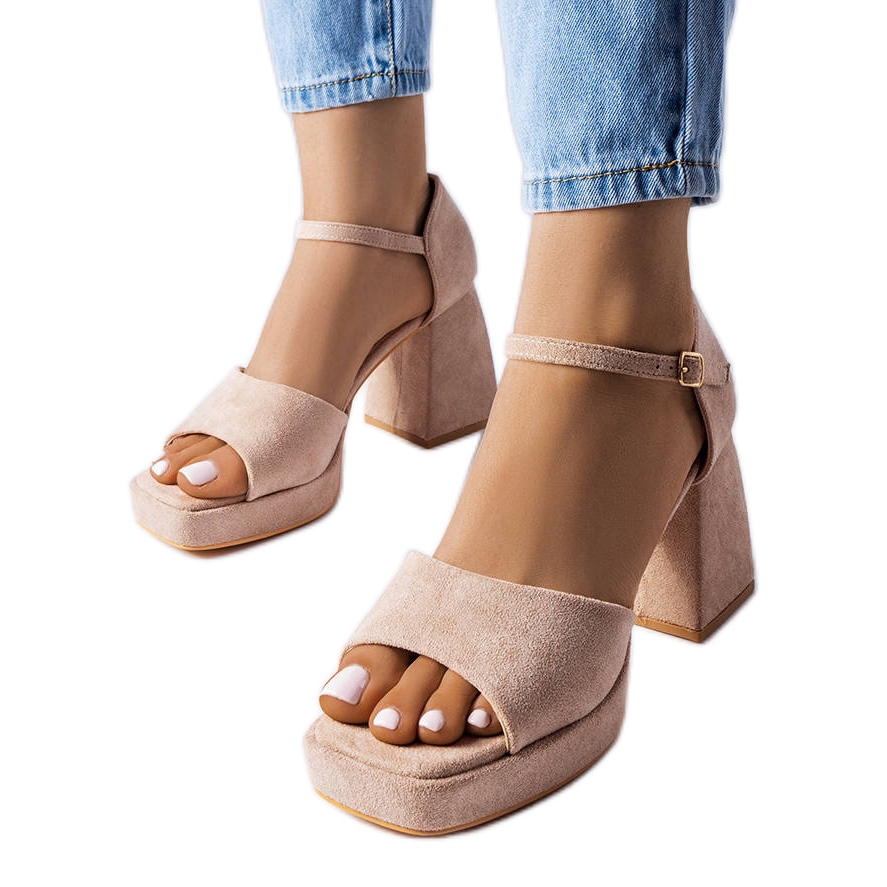 Inna marka Beige sandals with a fashionable heel from Vinceza