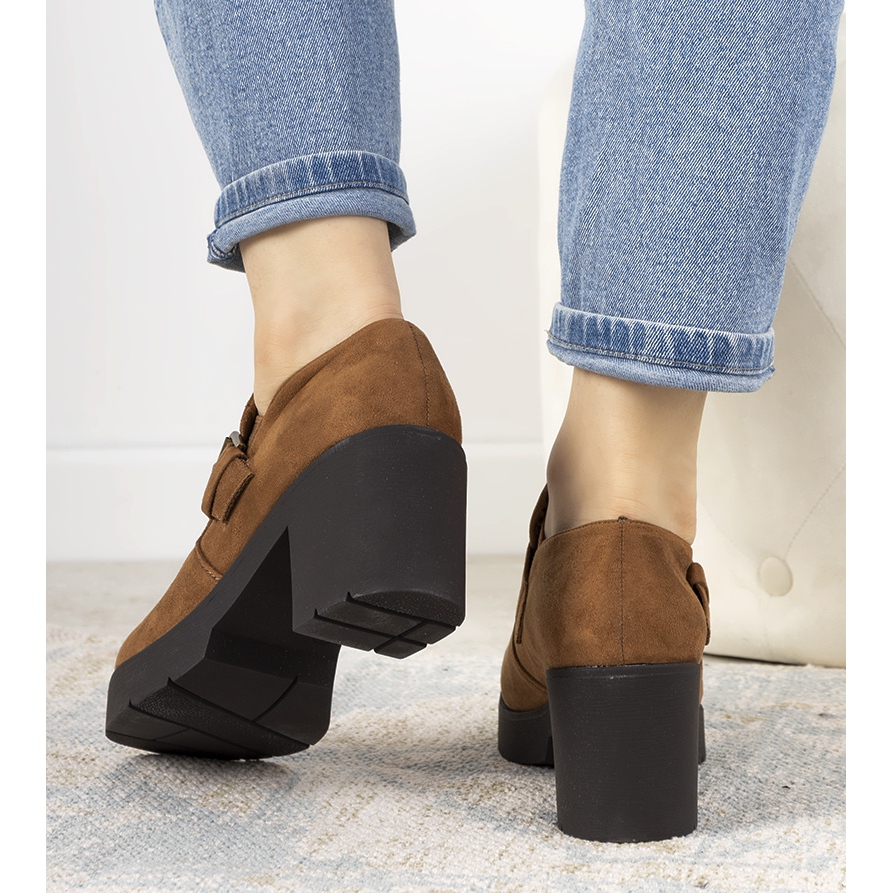 Beige Leonie block heel shoes in a khaki shade are the perfect choice for the upcoming autumn days. Their elegant design makes them a perfect complement to any styling, both casual and more formal. The stable 7 cm block heel beautifully shapes the silhouette, lengthening the legs, which every woman will certainly appreciate.