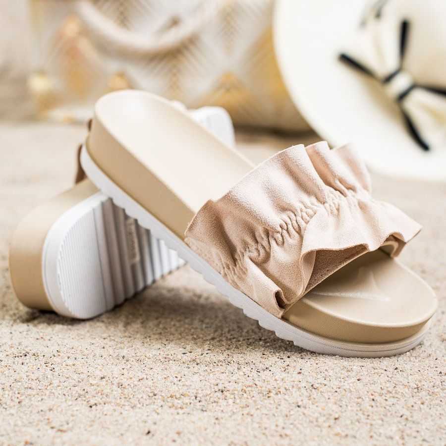 Designed for everyday use, SHELOVET flip-flops are distinguished primarily by their universal, beige color. It is a perfect base for creating various styles - from more casual to more sophisticated combinations. High-quality 100% suede imitation used to produce the outer material ensures durability and aesthetic appearance.
