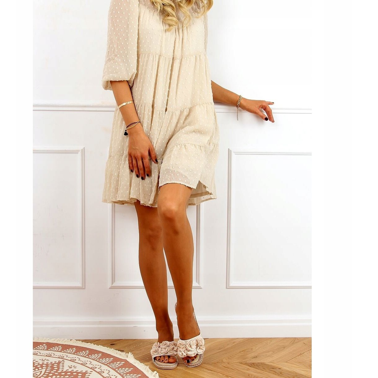 Details: Beige slippers with flowers 35-219 Beige
