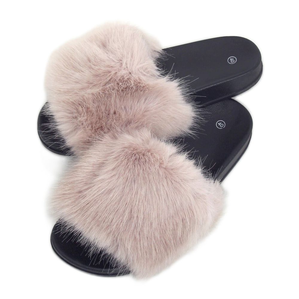 The flip-flops are made of durable rubber materials, which ensures their durability. The beige color makes them fit perfectly into various styles and are easy to match with other elements of the wardrobe. Decorative fur adds a unique character, making them a great choice for women who value a fashionable look and comfort.