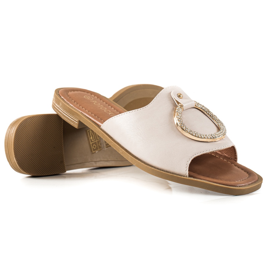 Choose beige flip-flops with Potocki decoration to enjoy comfort and style in the spring-summer season!