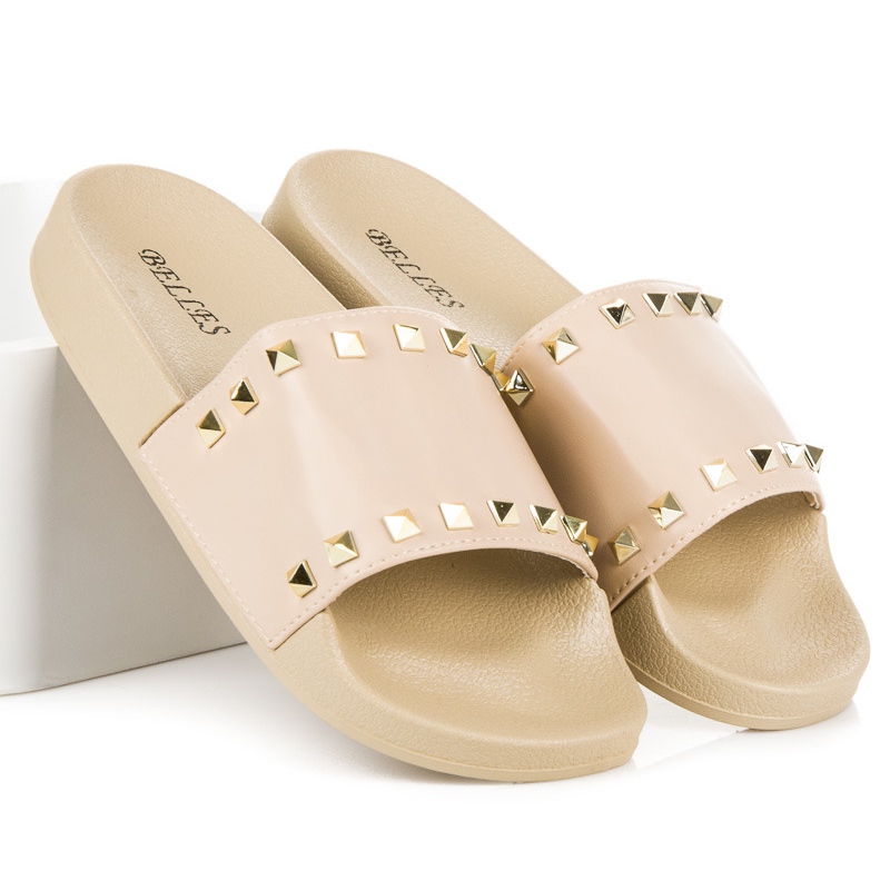 Details: Beige slippers with rhinestones