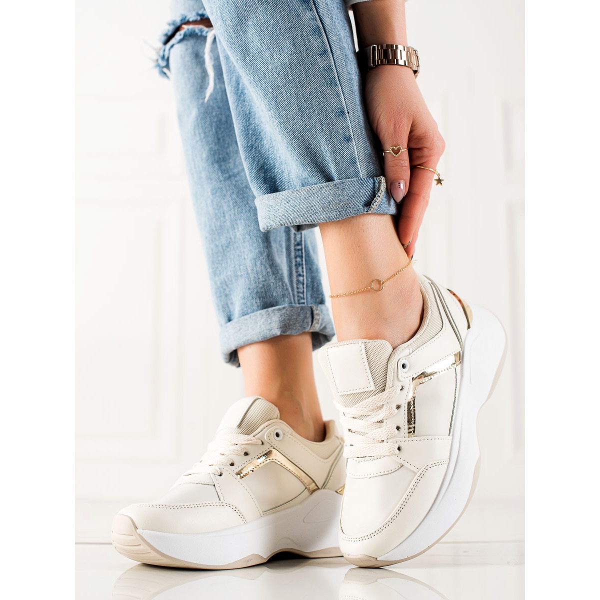 Diamantique Beige Sneakers are the perfect choice for women who value comfort and a fashionable style for everyday wear. These versatile sports shoes combine casual style with the latest fashion trends. Made of high-quality materials, 50% imitation leather and 50% textile, they offer not only an elegant look, but also comfort of wearing.