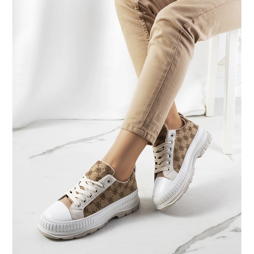 Bet on summer minimalism with Sneakers Meliko in Beige. The upper made of high quality fabric with a subtle, minimalist pattern and elements of organic leather creates elegant, universal shoes that you can easily match to many styles. Thick, soft rubber sole (white color) and 3.5 cm platform ensure stability and cushioning, and the ventilated fabric insert cares for comfort even during longer wearing.