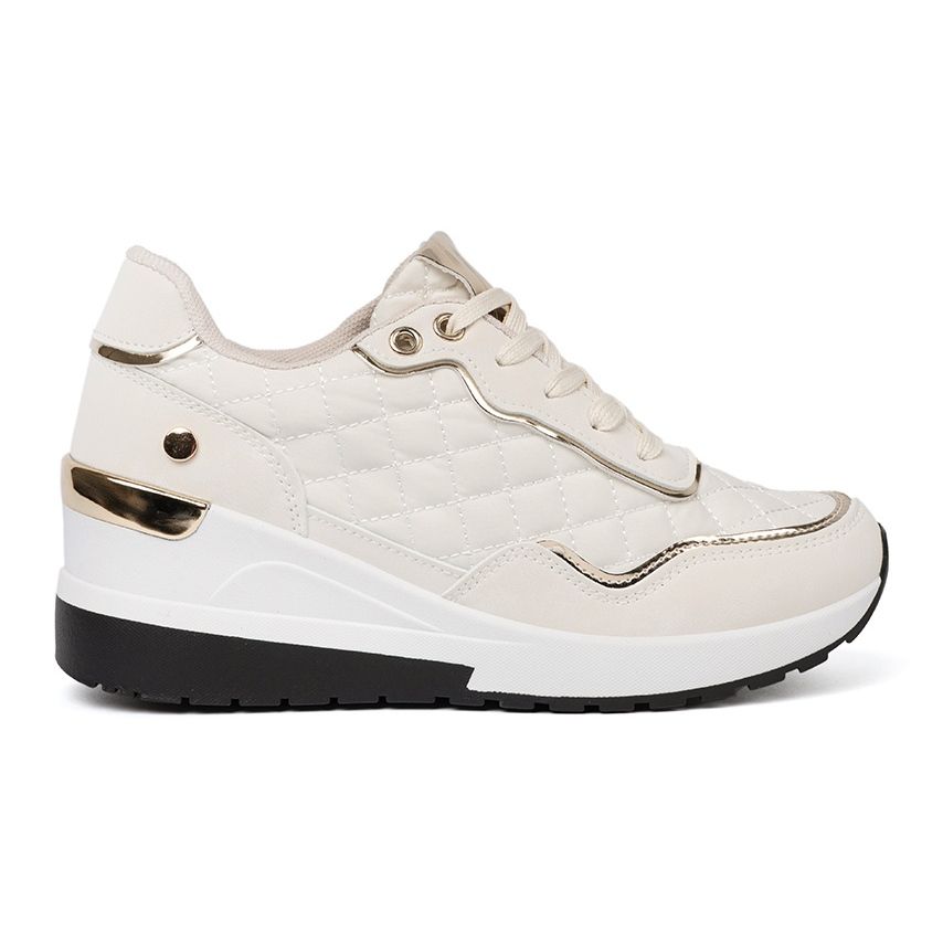 Details: Shelvt Beige sneakers with shimmering golden accents
