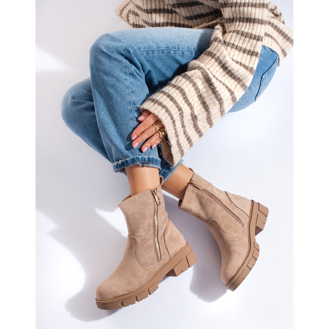 Vinceza Beige suede ankle boots with a decorative zipper by Vinceza