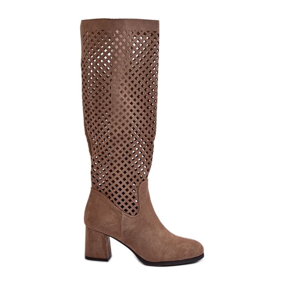 Details: Beige Suede Openwork High Heel Boots Jolenna