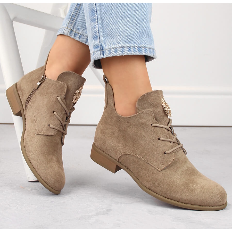 Details: Beige suede women's low-heeled ankle boots Jezzi ASA142-54