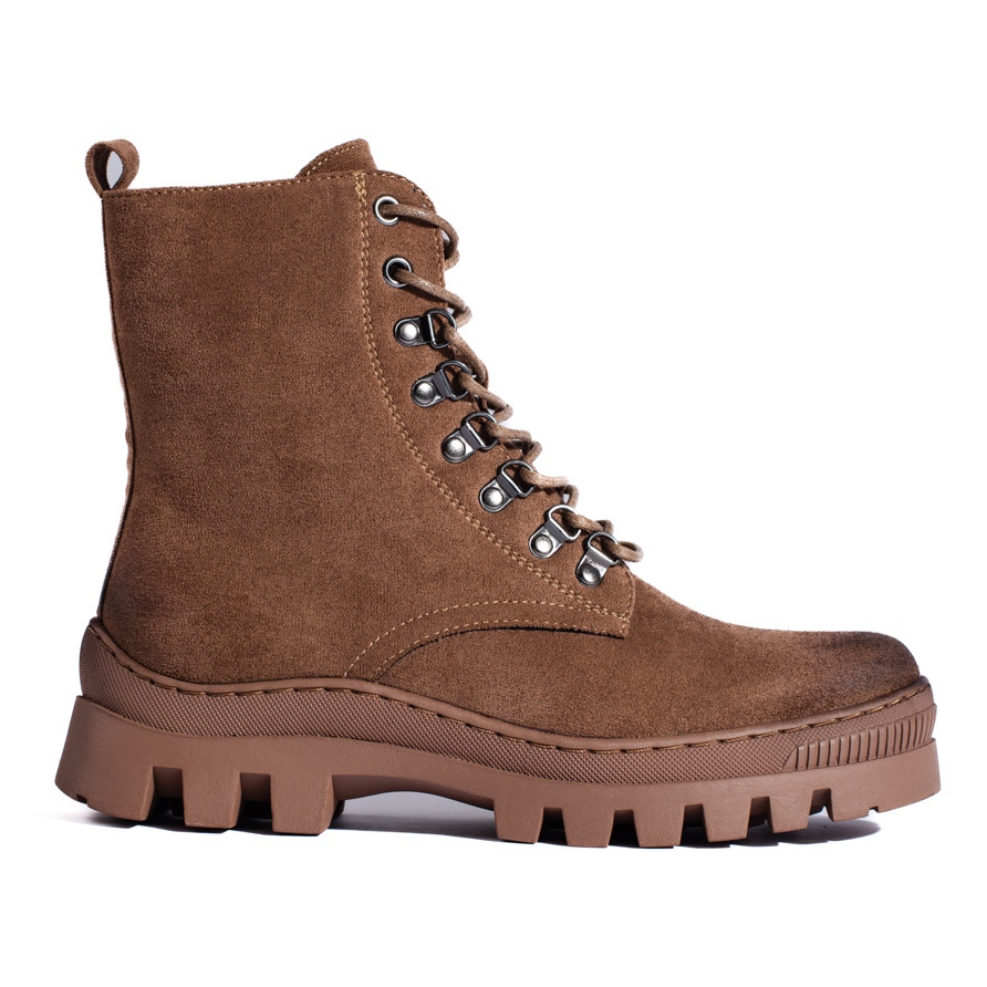 The 17 cm high upper, made of ecological suede leather, provides not only an elegant look, but also comfort of wearing. The heel is closed and soft, which increases comfort even during a long day. The boots are equipped with a practical fastening: a zipper and laces, which makes it easier to put on and adjust to the foot.
