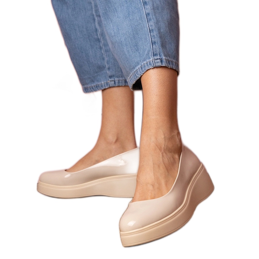 Beige -varnished shoes on the platform is a universal element of clothing that goes well with both jeans and skirts or dresses. The original pack in the form of a box makes them also a interesting gift idea for a loved one. Bet on comfort and elegance with the 5043-1 model!