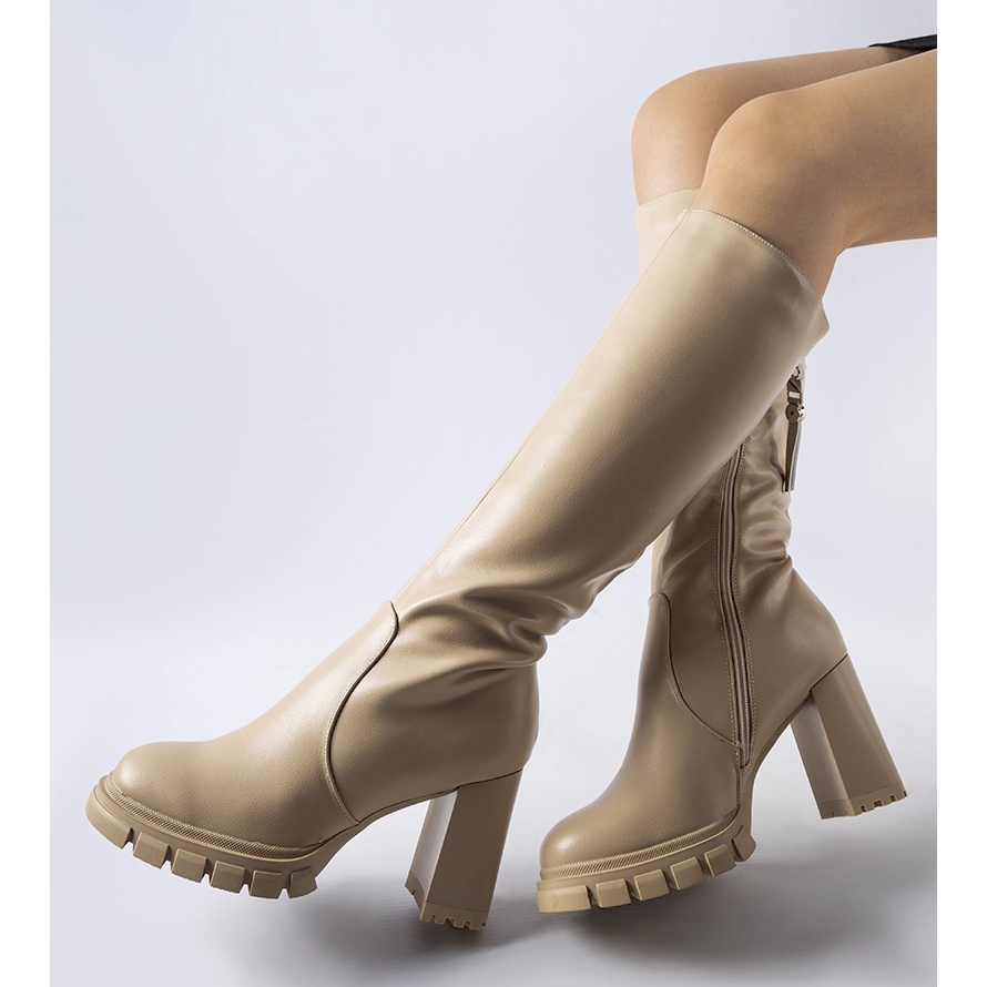 Beige, long boots on the GD-FL3031 post-a combination of elegance and functionality ideal for the autumn-winter season. The classic cut reaching to the knee (shoe height 49 cm) with a rounded nose and a 9 cm stable heel on the post adds style, while ensuring comfort and certainty of the steps. The insulated design makes boots perfectly protect against cold, and the side lock makes it easier to put on and take off.